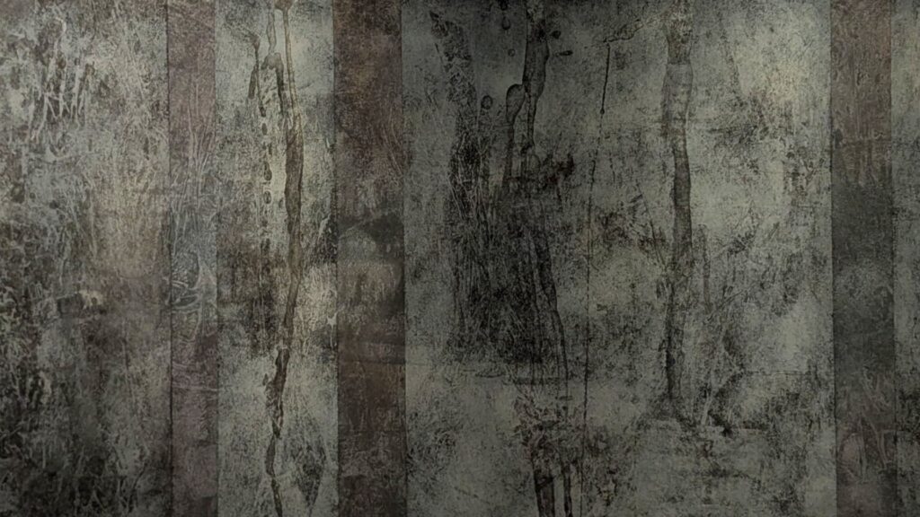 Suddenly, from the lower-left quadrant, an echo of Bacon’s “Innocent X“ emerges—a haunting variation that bridges past and present. My gaze drifts across a blurred backdrop of subtle chiaroscuro, where in the upper-left corner, a divine specter seems to watch over the unfolding narrative.